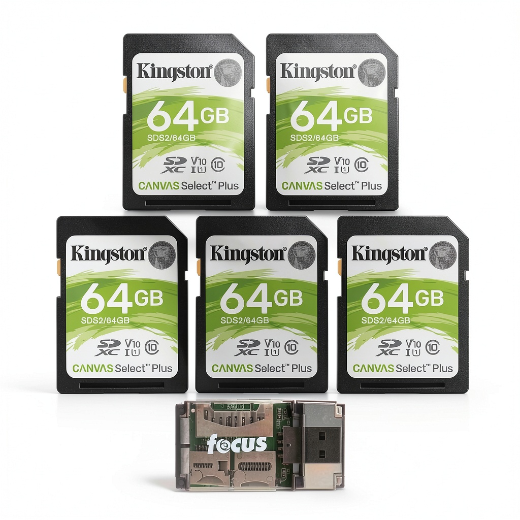 - Five 64GB SDHC cards with included card reader for expanded storage capacity