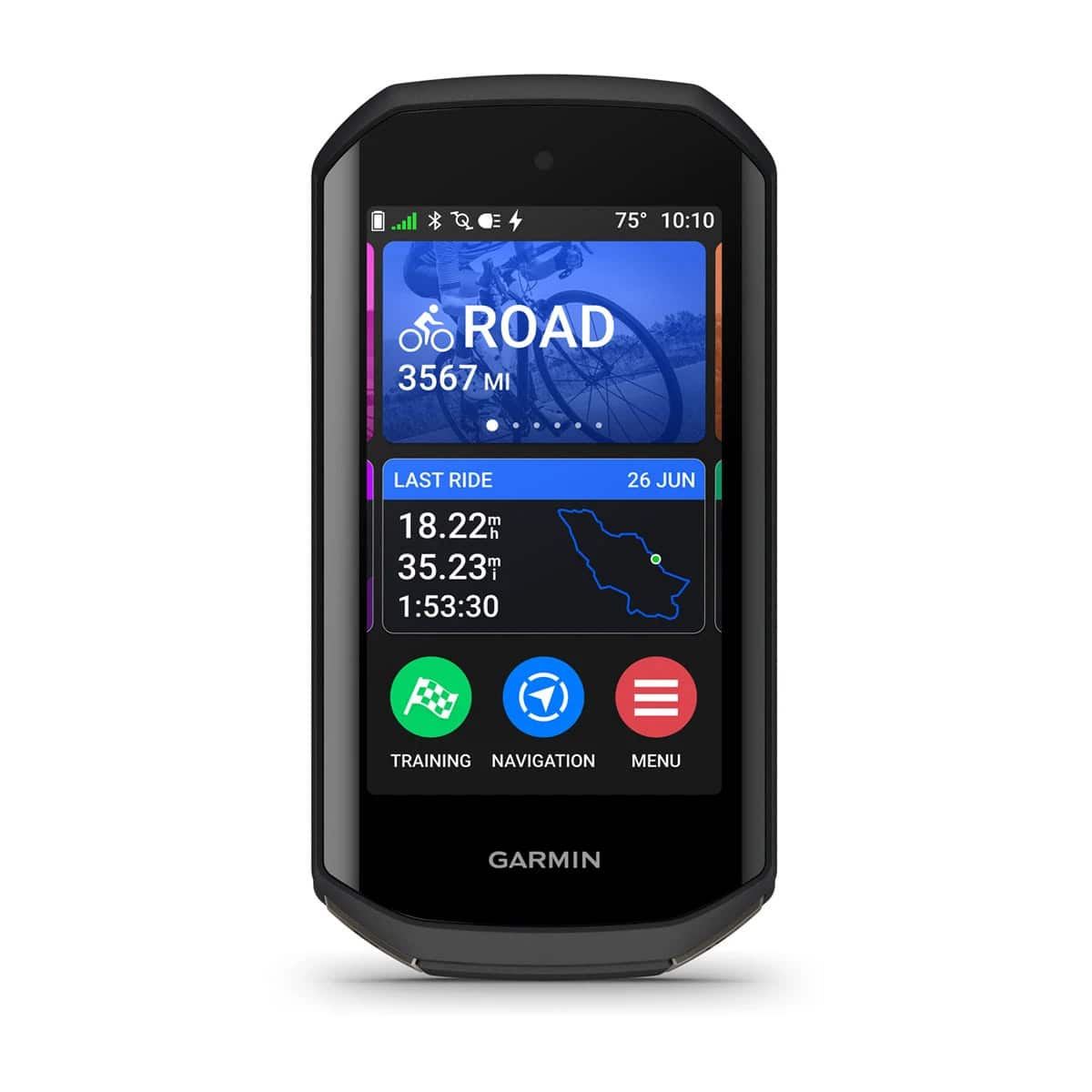 The screen measures 3.5 inches diagonally, providing ample space for easy viewing of maps and data while riding.